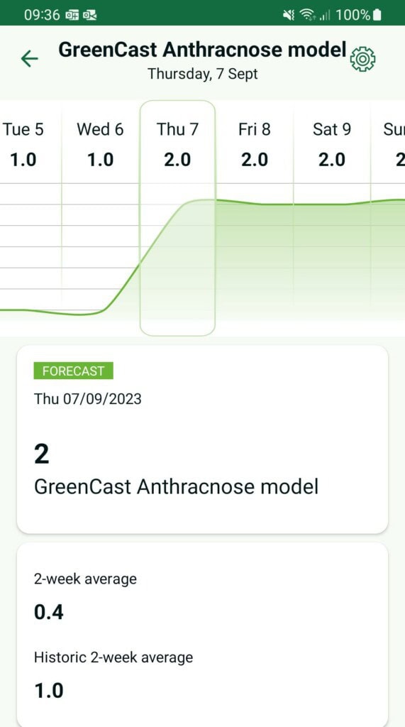 I’m based in South Wales and with the heat the Greencast Anthracnose model, in the nearly ready to release TurfAdvisor app is climbing to 2 out of 4. (4 being the highest pressure from the environmental conditions).