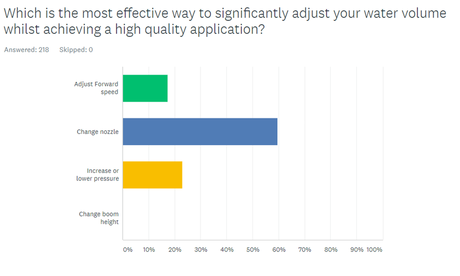 Significant changes in water volume will need nozzle adjustment to ensure a good application, fine tuning of water volume can be made by adjusting forward speed and pressure but will quickly lead to a poor application if pushed too far.