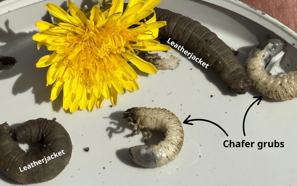 I dug some late stage leatherjackets up the other day, you can see compared to the dandelion flower they are as big as they will be growing.