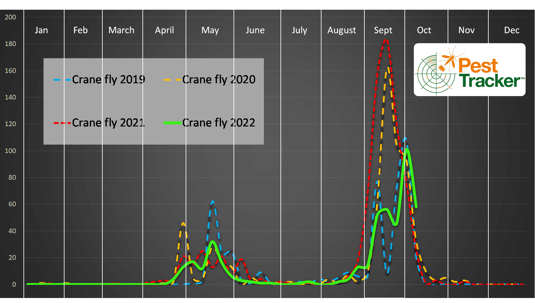 The last week of september 2019 was the peak of the Cranefly hatch with over 100 reported sightings. 2020 reported sightings are up but I’m still unclear if we’ve seen the peak. As far as Acelepryn applications go – As long as you’ve seen activity then now is the time, look for the next best…