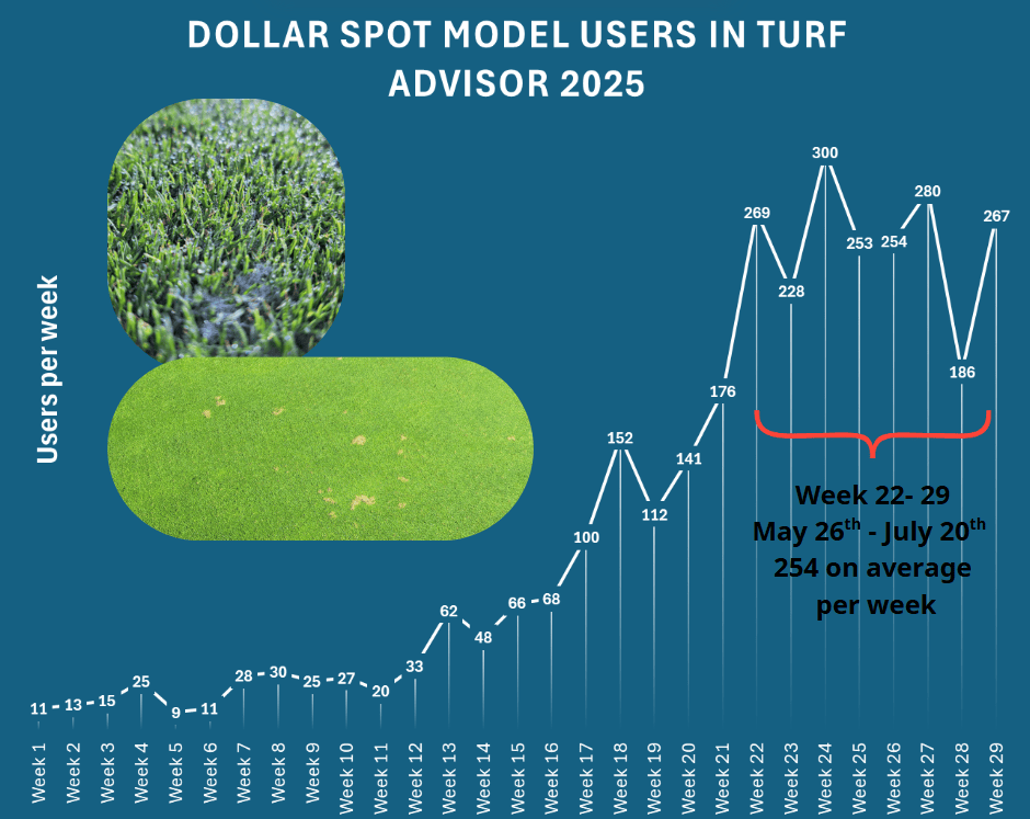 dollar spot disease pressure is primarily driven be warm temperatures and high humidity.