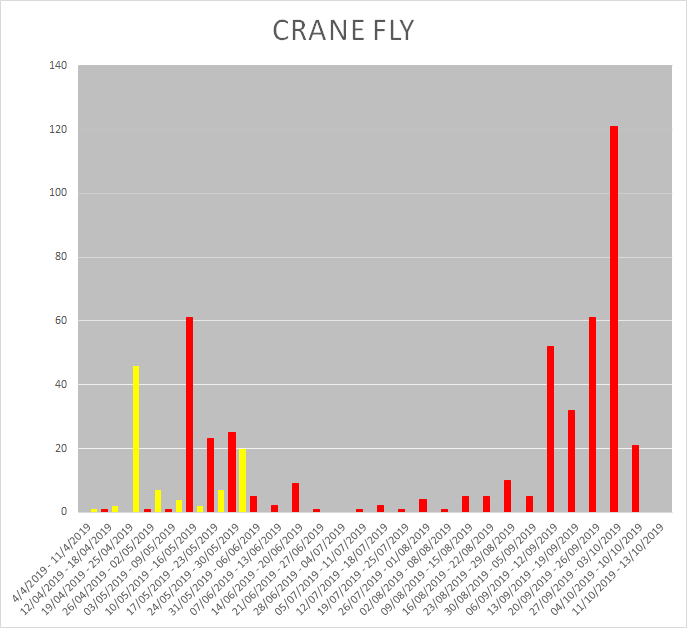 The above video shows all the logged sightings of Cranefly. We had an earlier peak a few weeks back. With the amount of leatherjackets seen on the greens surfaces recently I was expecting that flush to continue – Keep registering and watch this space.