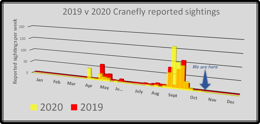 I was sent the image below this week from South Wales and PestTracker continues to do its job – PLEASE, PLEASE, PLEASE if you’re seeing Cranefly hatch still – please continue to log them.