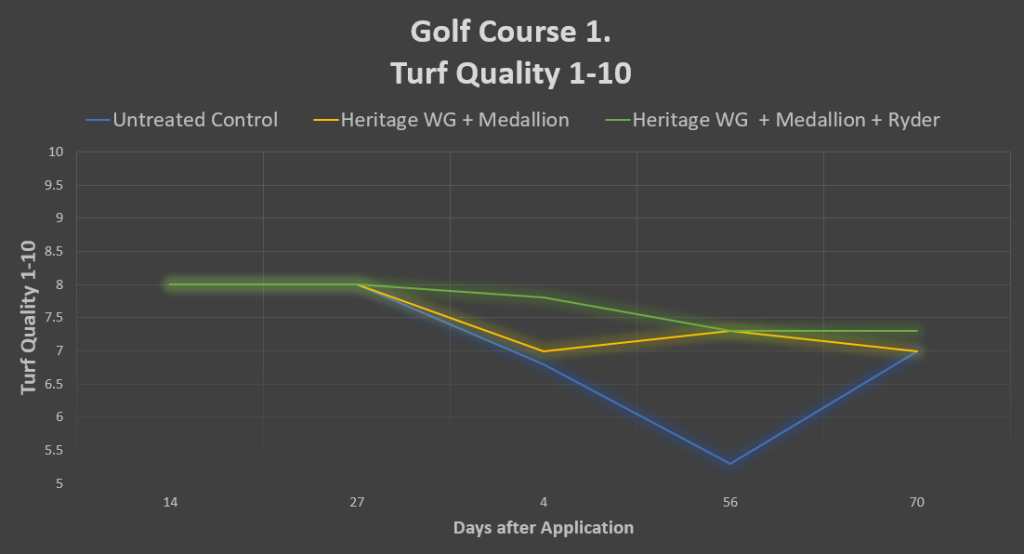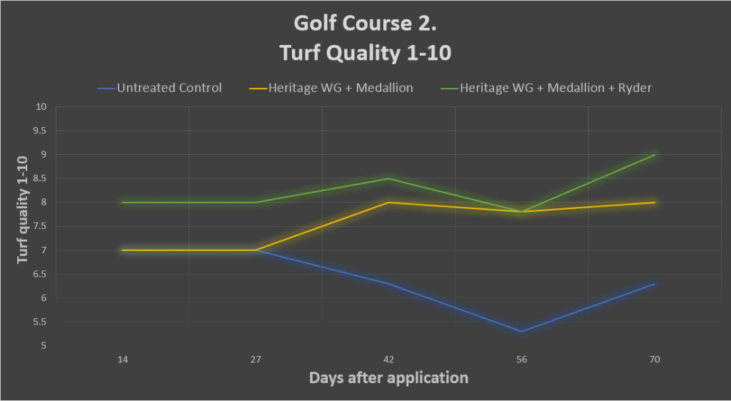Furthermore, by adding Ryder into the mix during this period of slowing growth in this trial, we gained an increase in turf quality and this is something that more turf managers are seeing.