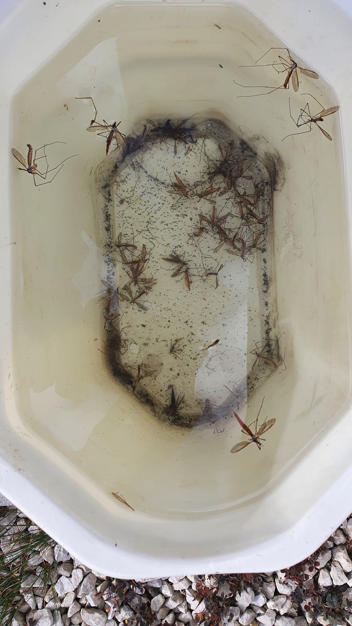 Dan at Newquay (who’s quickly becoming known as the pied piper of Craneflys) inadvertently created this Cranefly trap in a bucket in his back garden.