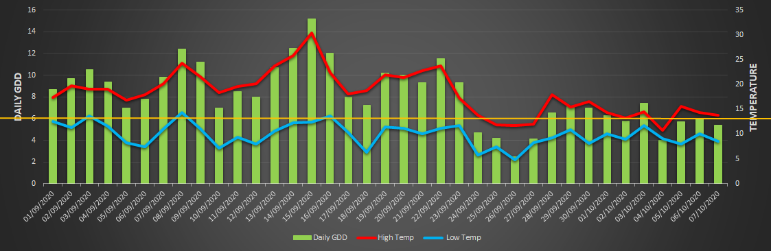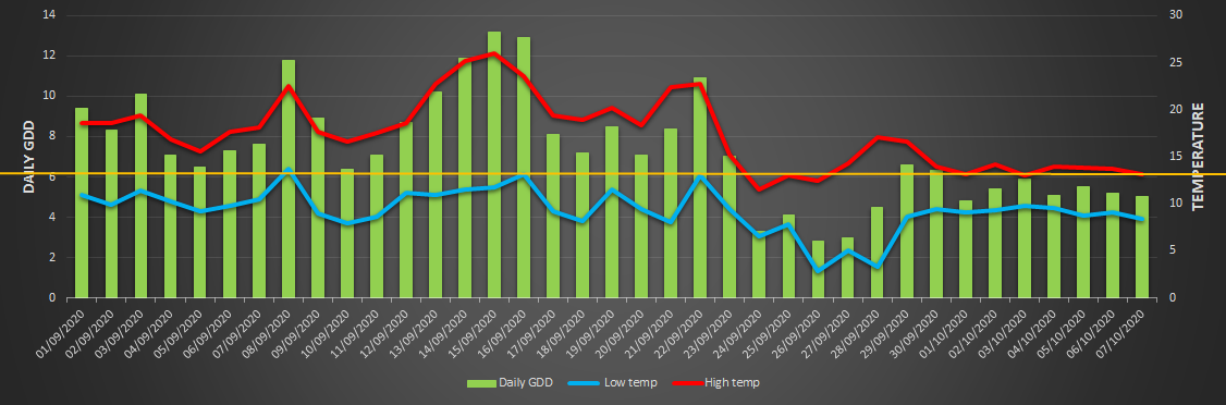 It’s not that GDD is some magic formula but it does indicate temperature ranges. For a GDD figure of 6 you need to be floating between 9 to 15 degrees which is a pretty good temperature range for Microdochium to get a hold. It’s also a period of the year that we’re unlikely to move back into strong growth as light is constantly reducing.