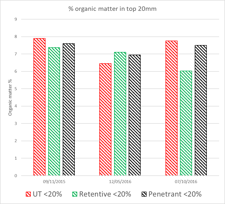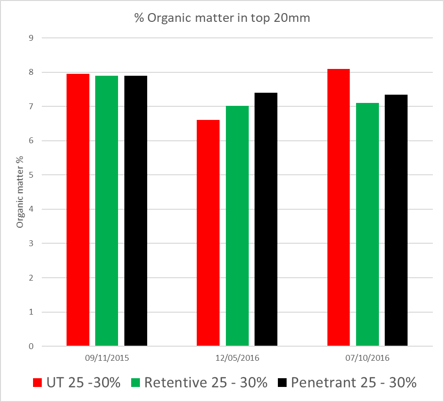 We measure organic matter at the beginning of the trial and again at the end. No aeration or renovations were conducted during this period.