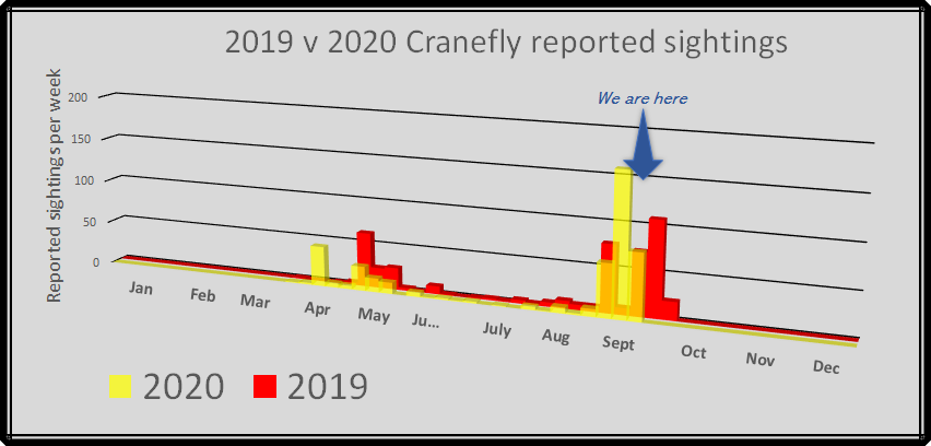 This time last year we were about to see the peak of Cranefly hatching. It’ll be interesting to see if that repeats itself again this year or if we are already there.