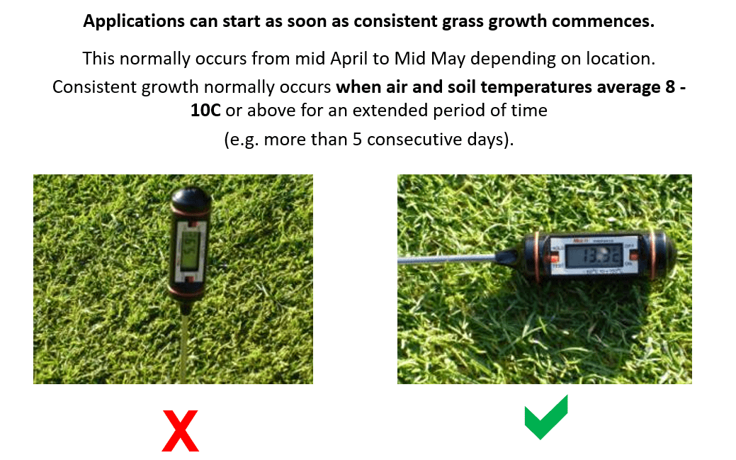 It depends where your spraying. Rates vary for different grass types and heights of cut. But we would generally advise going half rate for the very first application of the season.