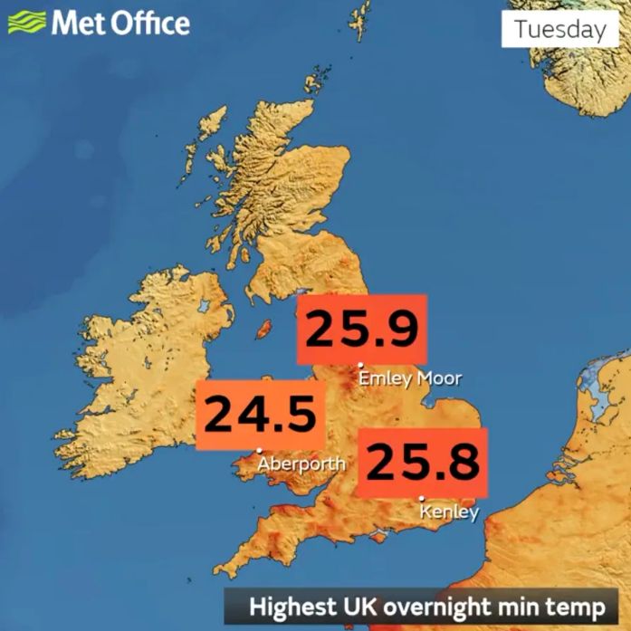I saw on the news that the UK had its hottest night on record on the 18th July. It didn’t drop below 25C all night in some parts according to the Met office. The all time high temperature for the UK was also broken when it reached a balmy 40C!