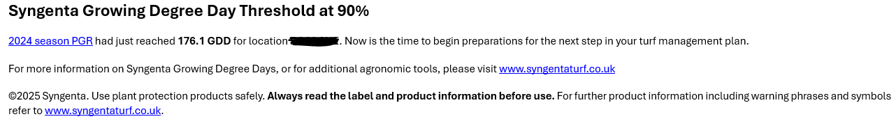 Any GDD thresholds you set last year on the Syngenta turf webpage will keep running, so you will get your notification emails at some point, especially if it warms up.