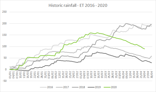 I wrote a few weeks back about the potential for a Spring dry down after a prolonged wet and miserable winter. And sure enough that’s exactly whats happened. The above graph shows how this is a fairly regular pattern and has occurred in 3 of the last 5 years here in the south of the UK.
