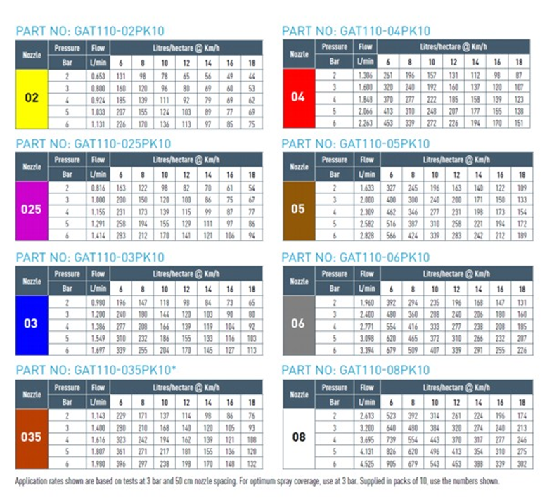 These nozzle charts should come with your nozzles when you purchase them – keep hold of them they are a really useful tool when trying to get the best out of any product you put through your sprayer.