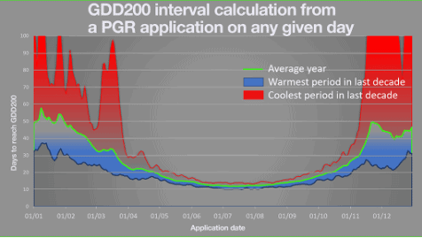 If you missed the GI article last month “Cutting turf growth” there are some great insights for using Primo to get the most out of it, including my favorite GDD graph of all time: