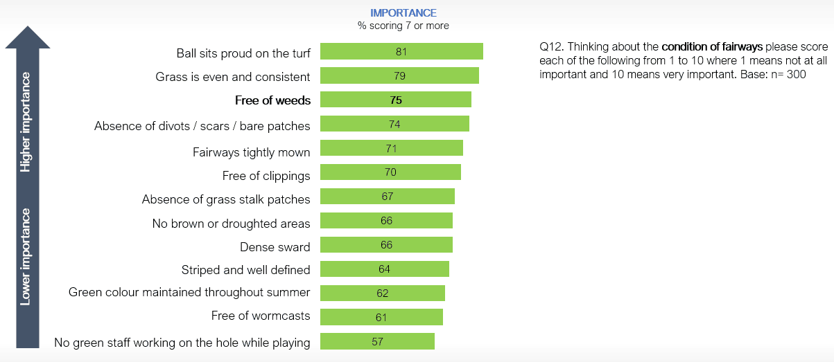 3. Player expectation. As you can see from the results of the survey below whether weeds affect play on not, golfers feel they are an important issue on fairways.