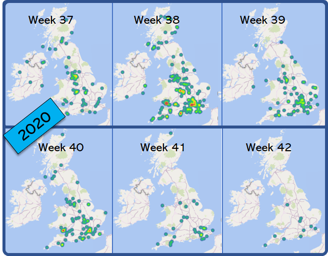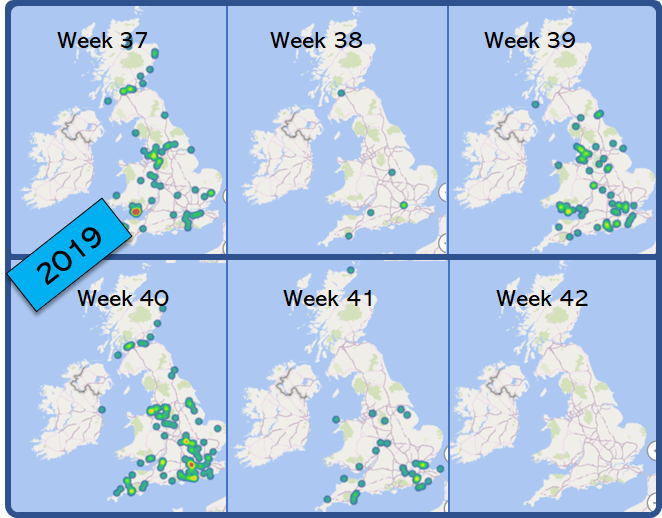 Looking at 2 years of Autumn data now it looks to me the hatch pattern finishes in later in the South.
