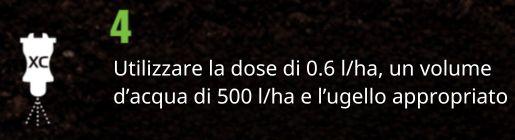 Buona pratica #4: Utilizzare la dose di 0.6 l/ha, un volume d’acqua di 500 l/ha e l’ugello appropriato