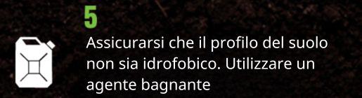 Buona pratica #5: Assicurarsi che il profilo del suolo non sia idrofobico. Utilizzare un agente bagnante