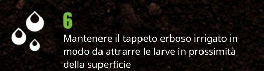 Buona pratica #6: Mantenere il tappeto erboso irrigato in modo da attrarre le larve in prossimità della superficie
