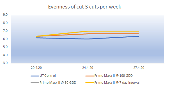 Primo Maxx II @ 7 day interval, mown 1x/week6.06.07.0