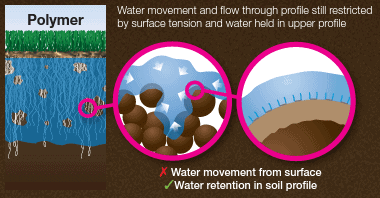 If we have issues of sub surface compaction, or the soil is a relatively thin layer onto a non permeable surface (like rock) then you can get surface water, as there is nowhere for the water to drain to. That can’t be made worst with wetting agents as its going to hold that water regardless of the presence of a polymer, its just physically got nowhere to go.